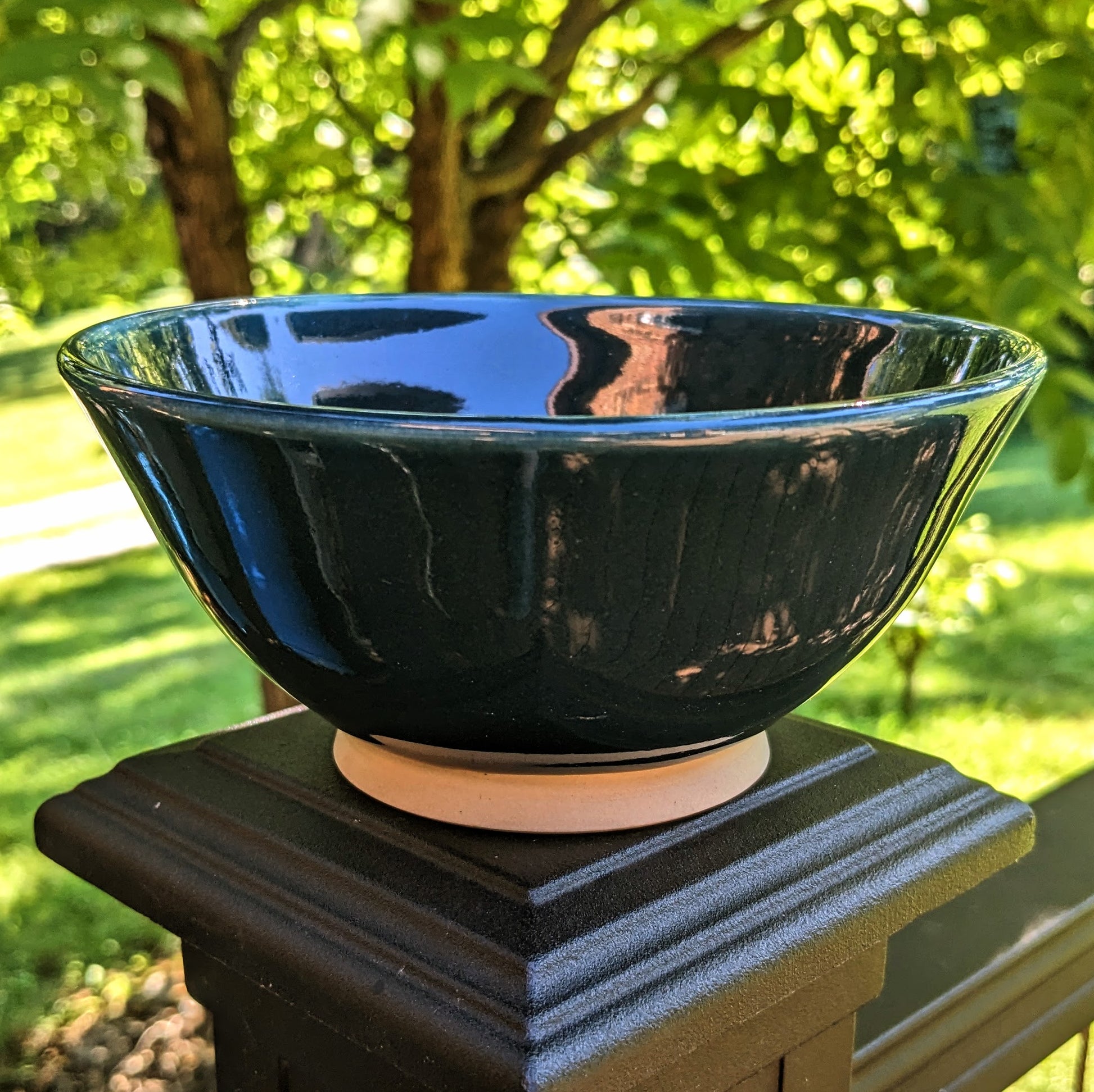 This medium bowl was made this spring at my community studio. It was made with the glaze, Dark Teal, which is provided at my studio, and has a smooth, glassy feel to it. This piece is dishwasher and microwaveable safe.