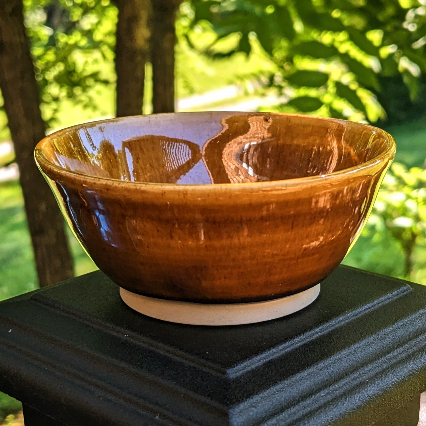 This small bowl was made this spring at my community studio. It was made with the glaze, Dancing Clown, which is provided at my studio, and has a smooth, glassy feel to it. This piece is dishwasher and microwaveable safe.
